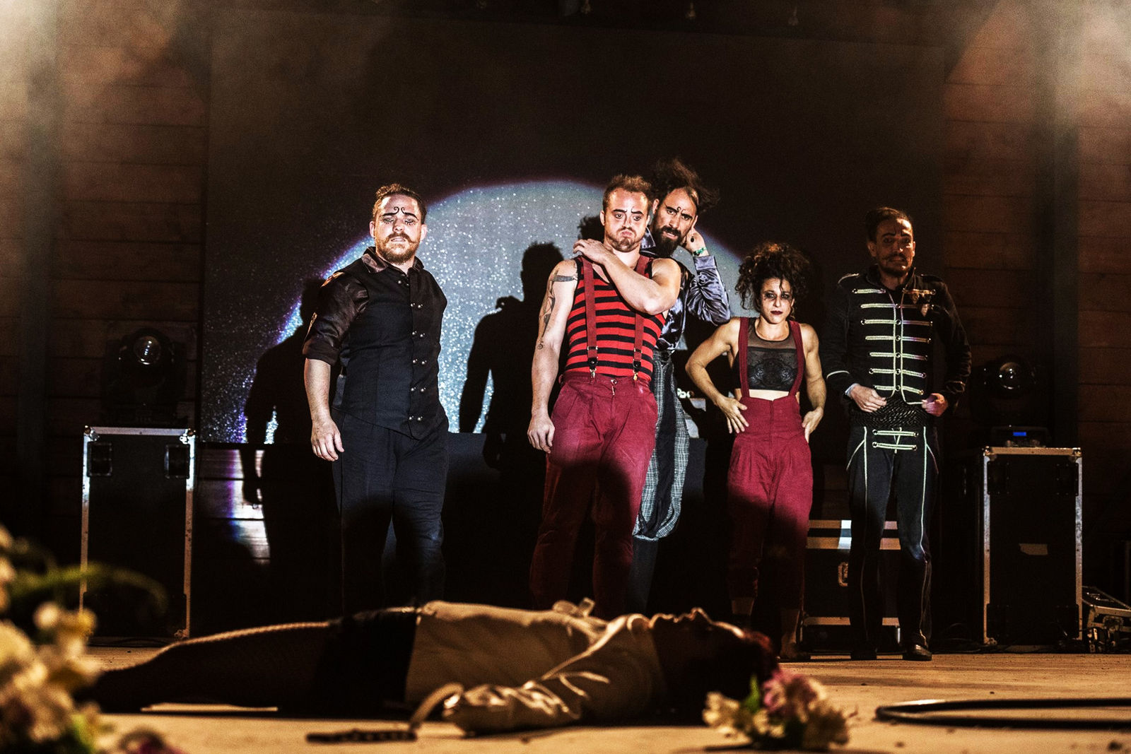 A cirkuszi varieté természetéből fakadóan rövid etűdökből áll, összefüggő előadássá a különc porondmester és a többi fura figura közötti viszonyok varázsolják.
