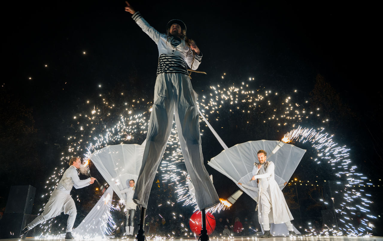 2021 decemberében a Pyrodise című előadásunk rövidített verzióját láthatjátok a Varázsligetben. A nagy volumenű tűzszínházi produkciót 2017- ben Farkas Linda barátunk emlékére hoztuk létre a Flame Flowers duóval kóprodukcióban. Látványos csoportos koreográfiák mellett, egyéni villanások, légtorna jelenet, árnyjáték és partnerakrobatika színesítik az előadást. Erre az adventi szezonra két négy fős szereposztást készítettünk belőle és a Tulipán Tündér Produkció kérésére a Játékkészítő muzikel két slágerét is belekomponáltuk a showba.