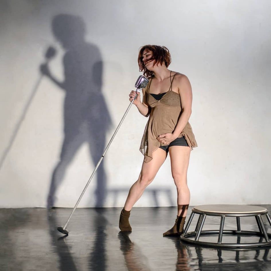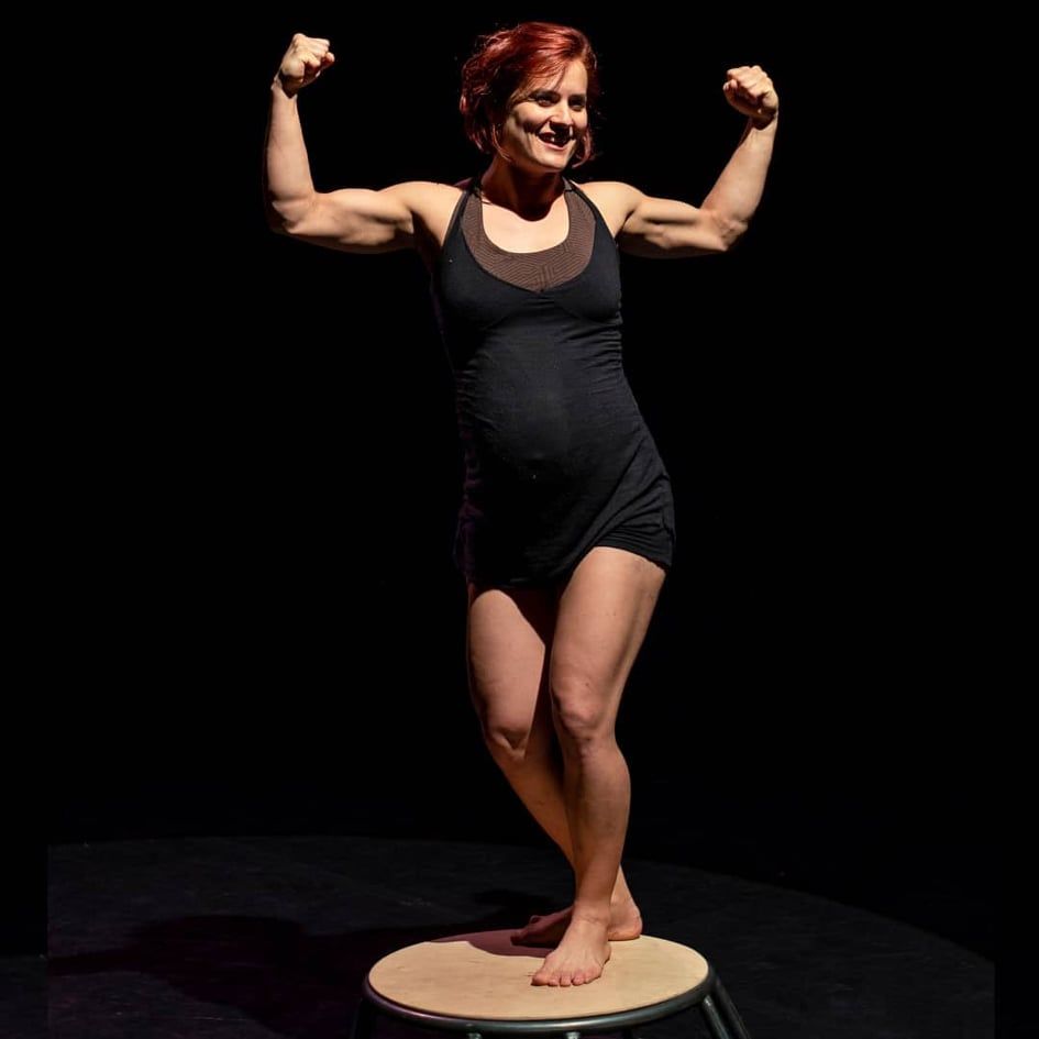 A közel negyvenöt perces szóló- duó- trió a legőszintébb előadás, amit valaha készítettem: rólam szól, a saját várandósság élményemről, én írtam a szövegeket, koreografáltam a mozgásokat, filéztem ki az agyamat és facsartam ki a szívemet ott a színpadon a magam akkor hét és fél hónapos terhes bálna testével. Egyed Bea néhányszor meglátogatott a próbateremben és bátorított, hogy merjem fájdalmasan őszintén, úgy ahogy van, magamat kiröhögve, mégis komolyan, egyszerűen kimondani ami van, azt. Hetekig csak azt gyakoroltam, hogy ne piruljak bele a mondataimba, vagy ne kommentáljam tikkelve, ha nem úgy puffant egy hangsúly épp ahogy szerettem volna. Ja, amúgy volt benne némi cikusz is: egy mikrofonnal kontakbotoztam, némi légi és partnerakrobatika is megtalálta benne a helyét, meg talán egy egész kézenállást is sikerült még magamból kipréselni.